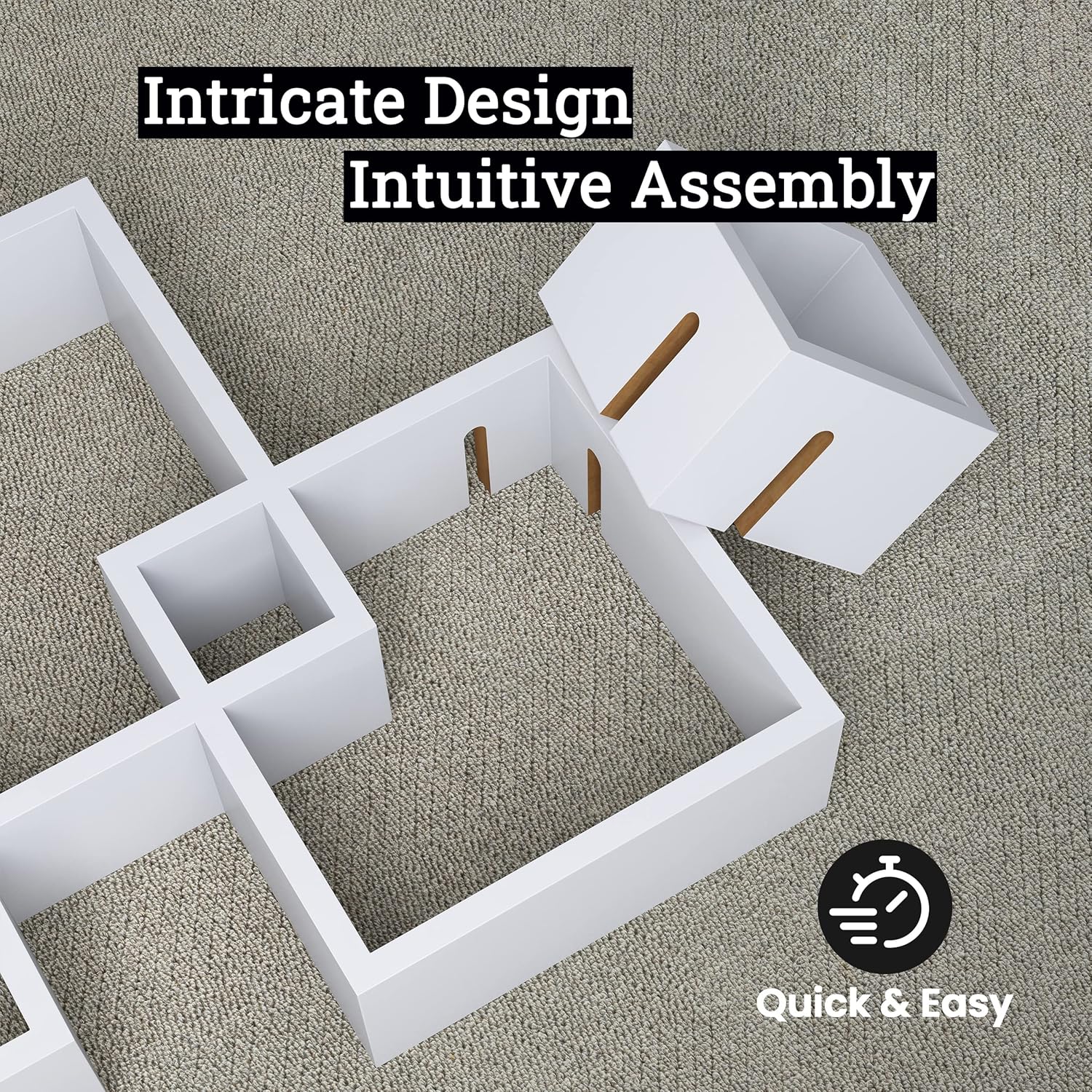 Greenco 4 Cube Intersecting Shelves, Easy-to-Assemble Floating Wall Mount Shelves for Bedrooms and Living Rooms, Rustic White Finish