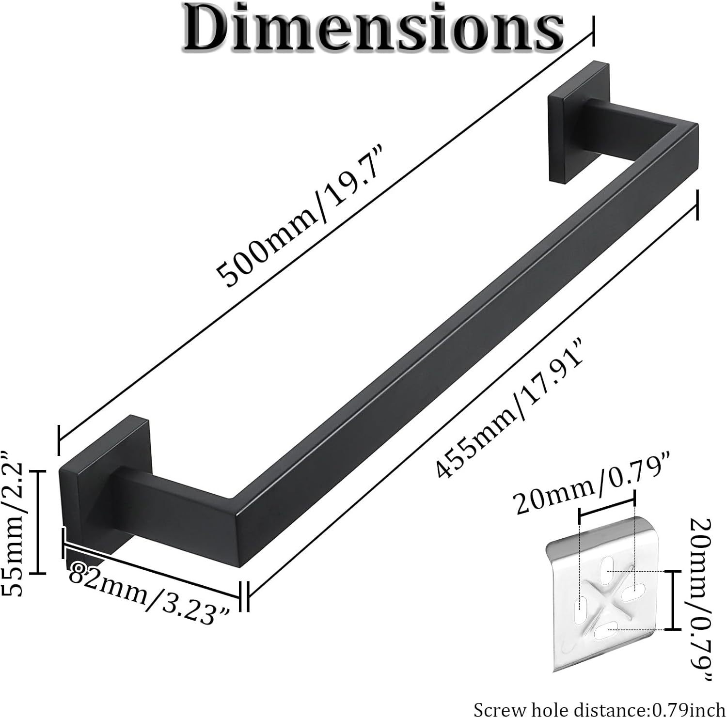 - 【Measure Before Buying】Dimensions 19.7''Lx2.2''Wx3.23''H, Useable Length 17.91 Inch towel hanger. 2.8 Inch Separation Distance from Wall - Enough space for quick drying, hanging towel quickly.No need to fold your towel any more.If you have any questions about the black towel bar, please feel free to contact me at any time
