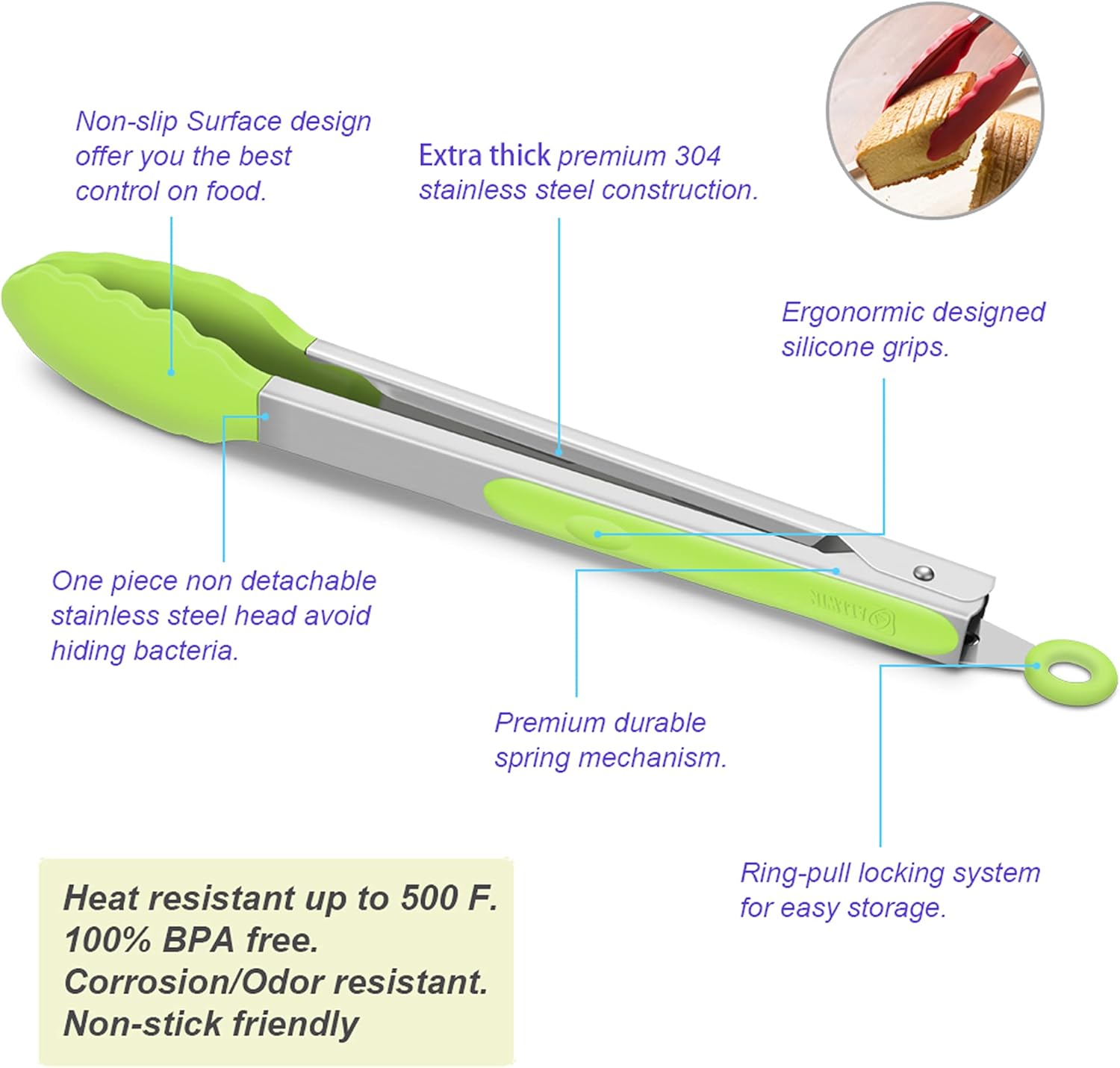 - Hygienic silicone tongs BPA-free.