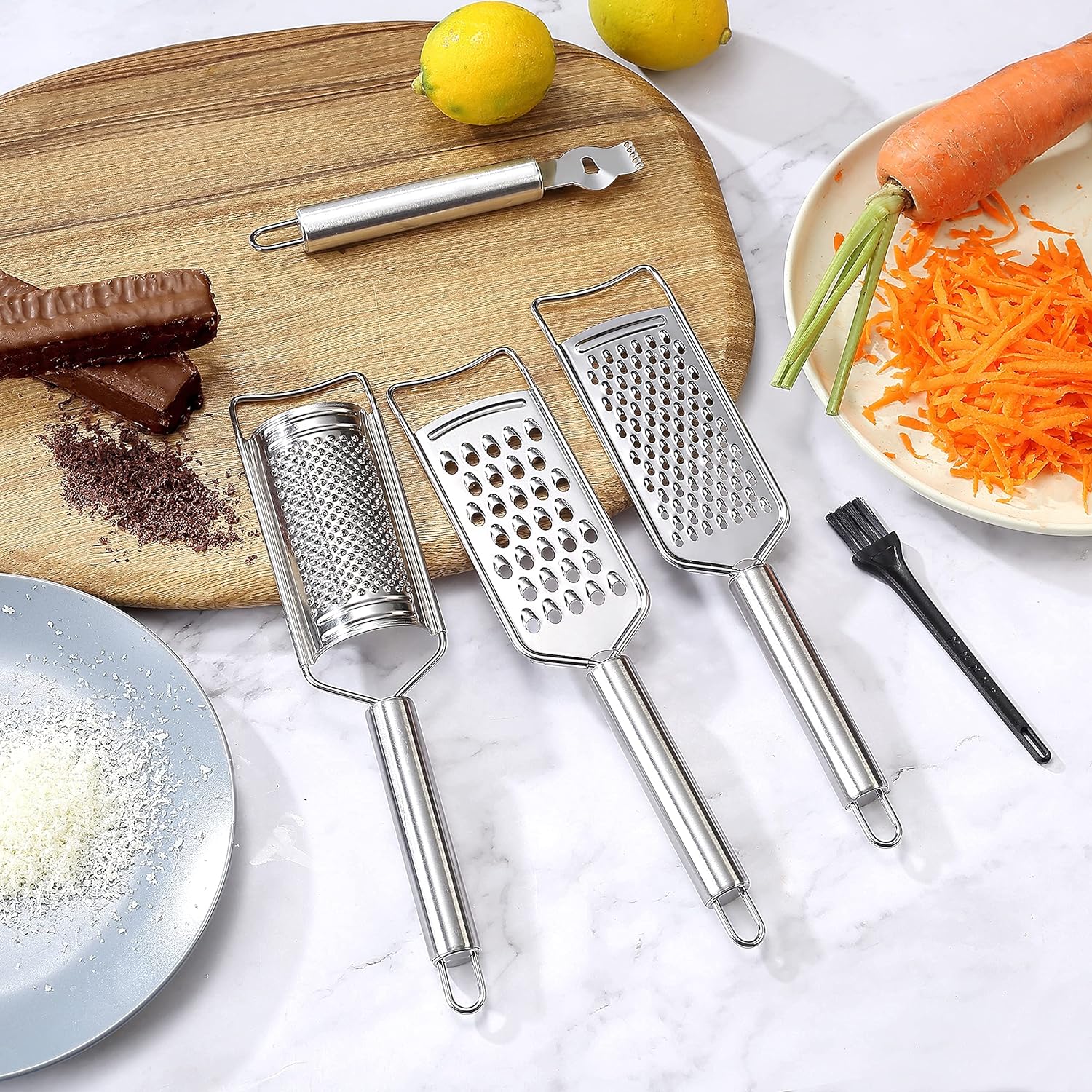 Tongjude Stainless Steel Cheese Grater Set, Set of 5 Kitchen Grater & Peeler & Slicer, Lemon Zester with Cleaning Brush for Vegetable, Fruit, Chocolate