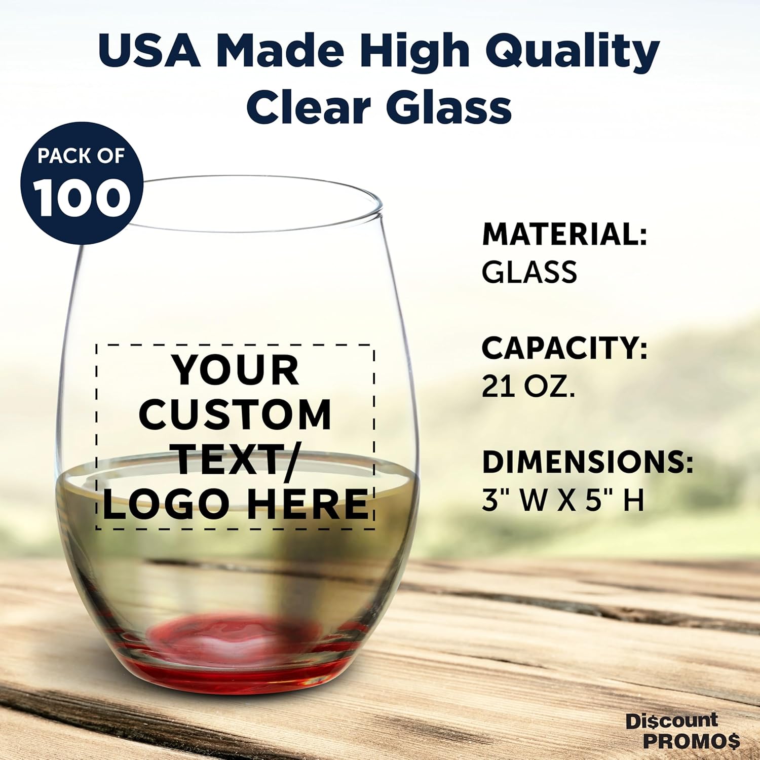DISCOUNT PROMOS 100 ARC Stemless Wine Glasses Set, 21 oz. - Customizable Text, Logo - Chardonnay, Cabernet, Merlot, Sauvignon - Red
