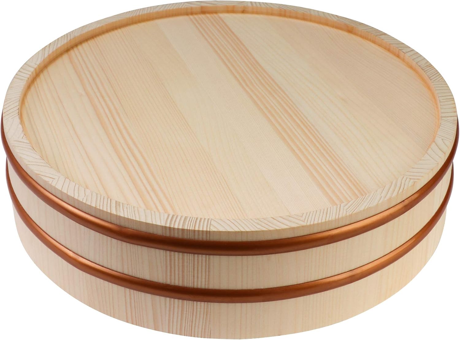 Kichgather Wooden Sushi Rice Bowl with Lid Hangiri Sushi Oke Sushi Rice Mixing Tub (10.6 “ with lid)