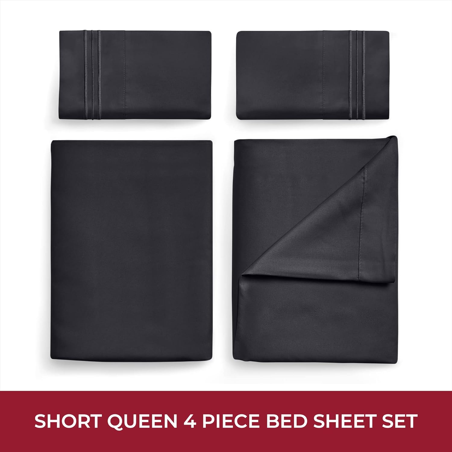 Mellanni RV Short Queen Sheets - 4 PC Iconic Collection Bedding - Hotel Luxury, Extra Soft, Cooling Bed Sheets - Deep Pocket up to 10 inch (RV/Short Queen, Black)
