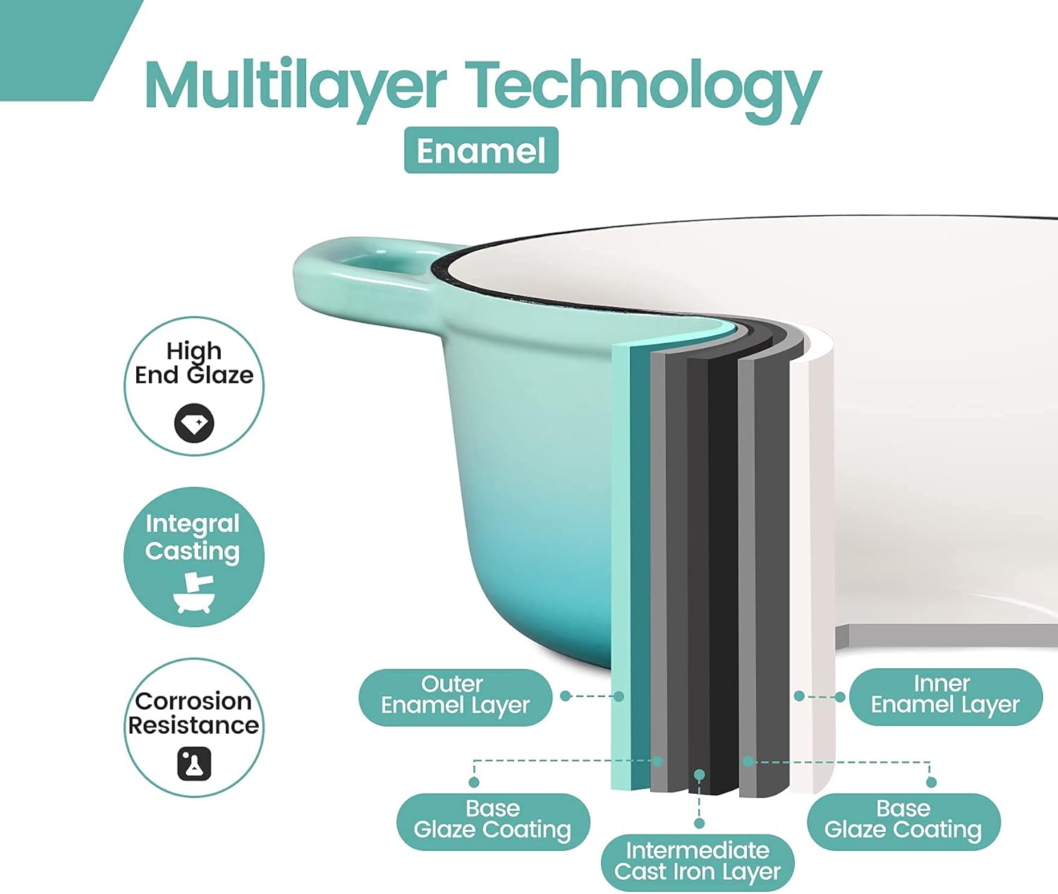 - Versatility: The ceramic dutch oven Can be used to marinate, cook, and store food, also compatible with induction, gas, electric, and ceramic glass cooktops