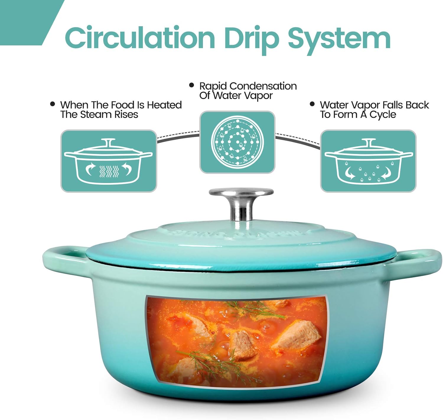 - Self circulation water locking: The dutch oven pot cover is thick and well sealed, which makes it difficult to lose water