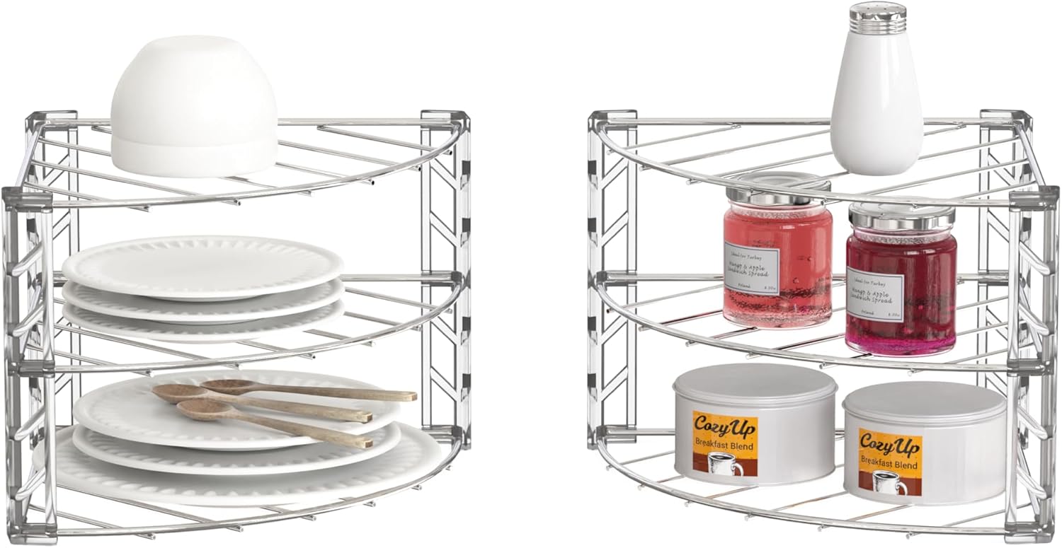 Deco Brothers 3-Tier Counter and Cabinet Corner Shelf Organizer, 2 Pack, Chrome