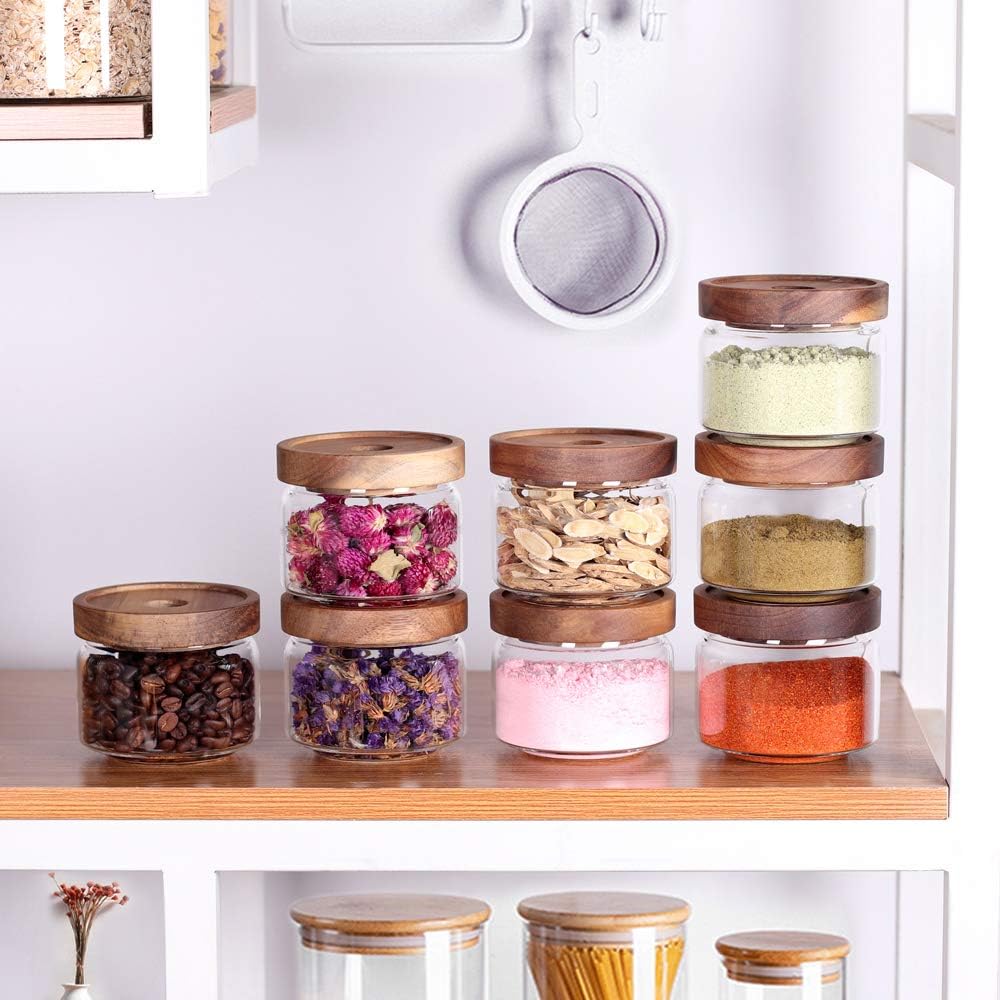 8 Pcs Spice Containers - 8.5oz Glass Spice Jars With Acacia Airtight Lid and Labels - Stackable Empty Round Spice Bottles for kitchen Seasoning, coffee bean, tea, suger, herbs