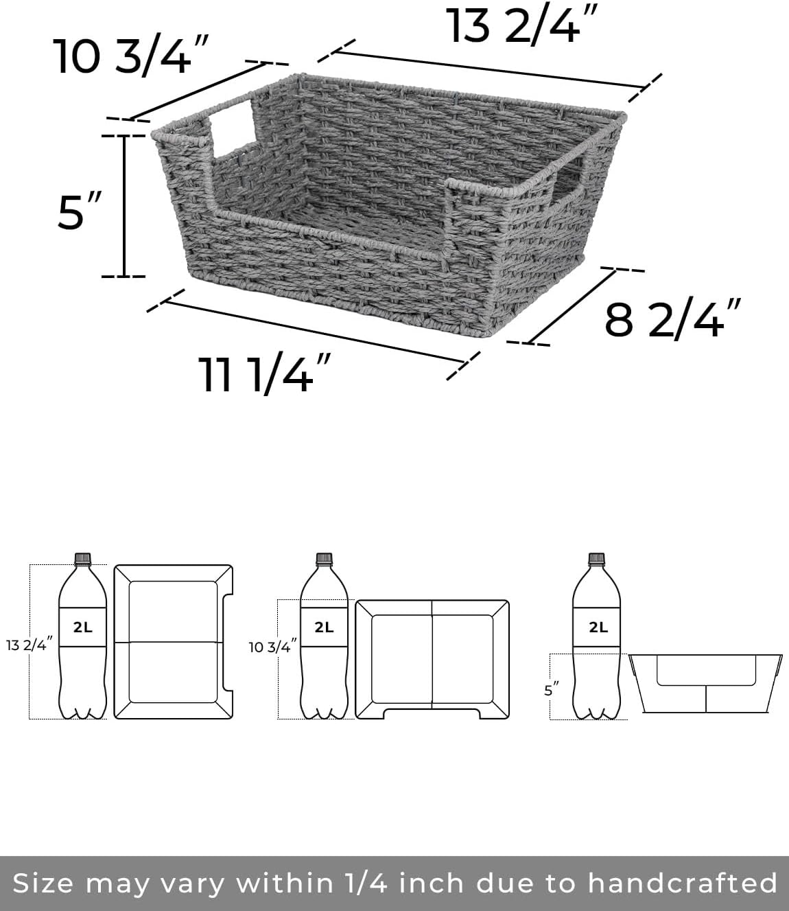 StorageWorks Round Paper Rope Woven Basket for Pantry Organizers and Storage, Stackable Wicker Pantry Baskets for Shelves, Grey, 2-Pack