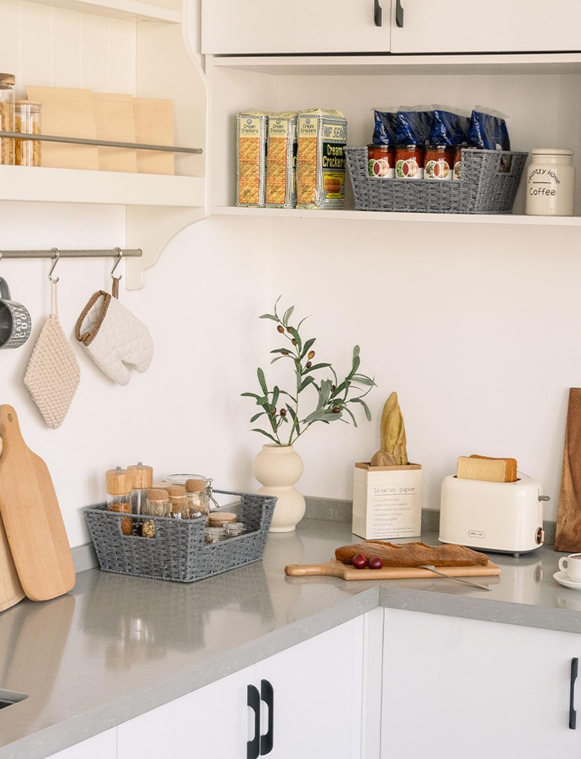 - Perfectly sized for use on shelving, pantry, kitchen cabinet, etc.