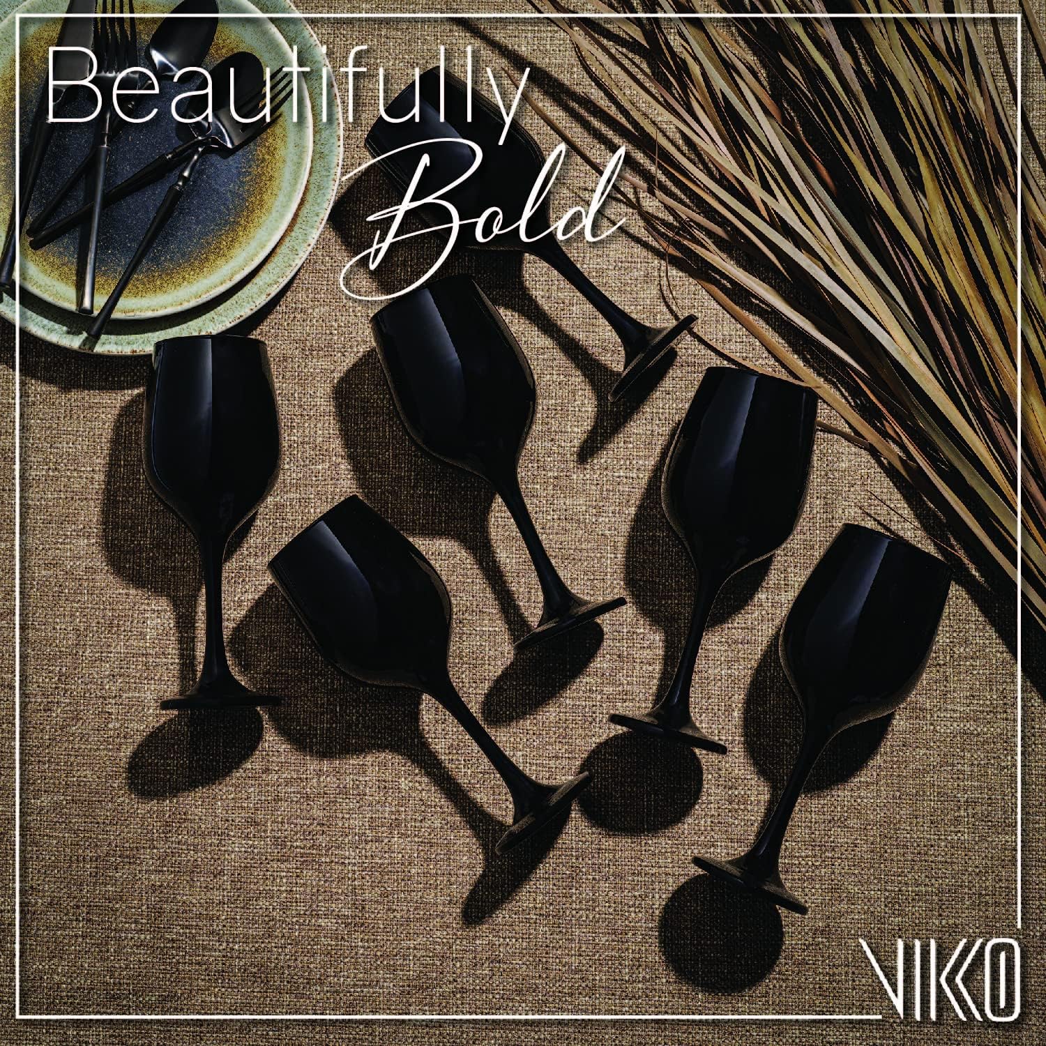 Vikko Black Wine Glasses Set of 6 Glasses Drinking Set Wine Glass, 14 Oz Glass Cup Set With Stem For Red And White Wine, Thick And Durable Wine Glass, Dishwasher Safe