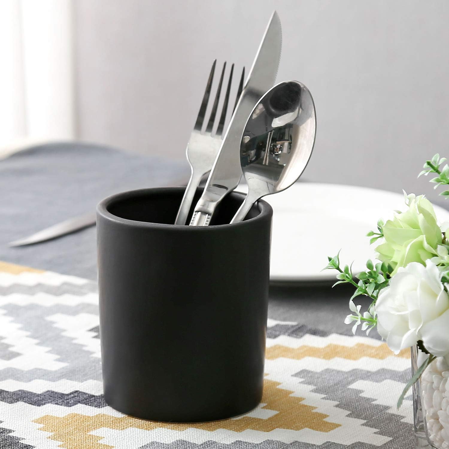 - Set of 2 small and large black ceramic kitchen crock utensil holders