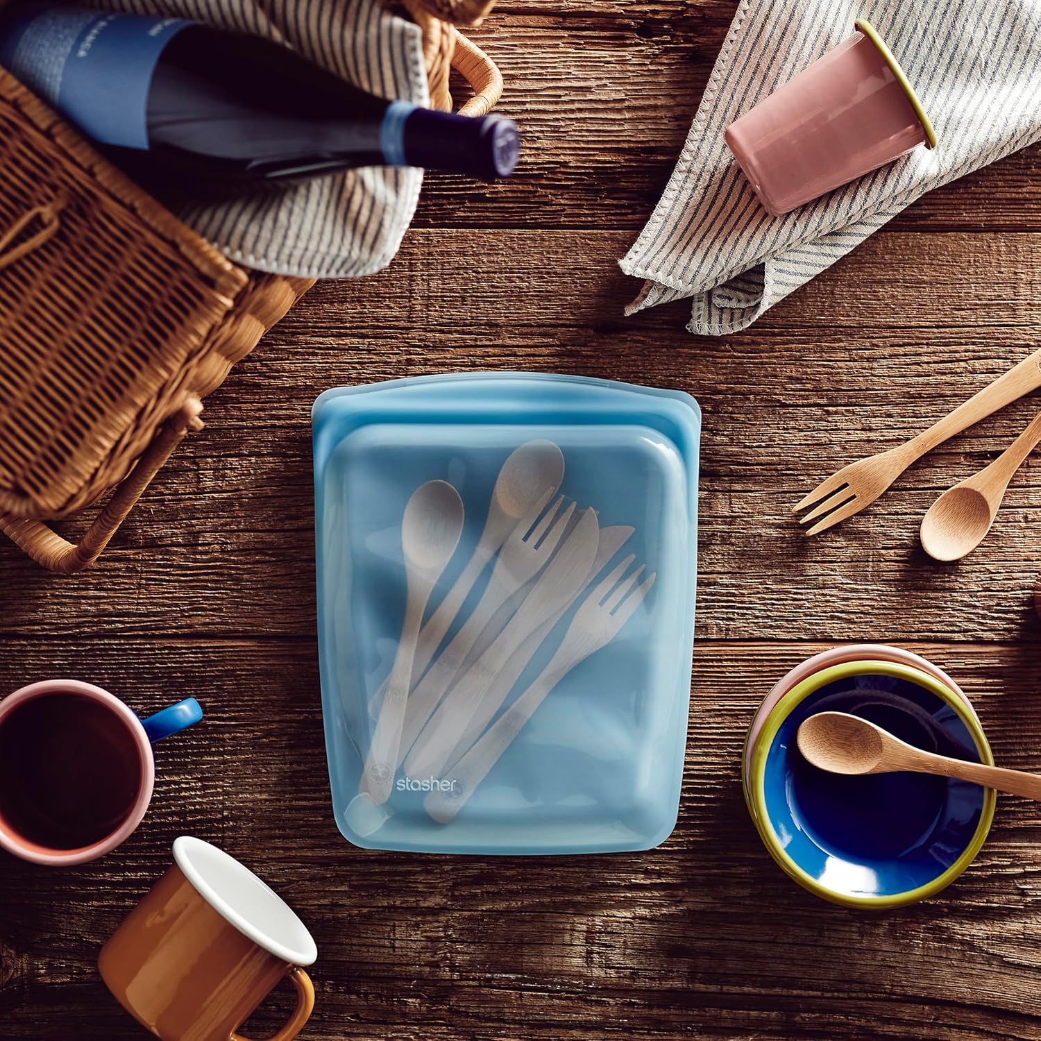 - REUSABLE, REWASHABLE CONTAINERS: Stasher silicone reusable storage bags make it easy to ditch single-use plastic and meet endless household needs. Safe for the dishwasher, microwave, oven (up to 425°F), and more.