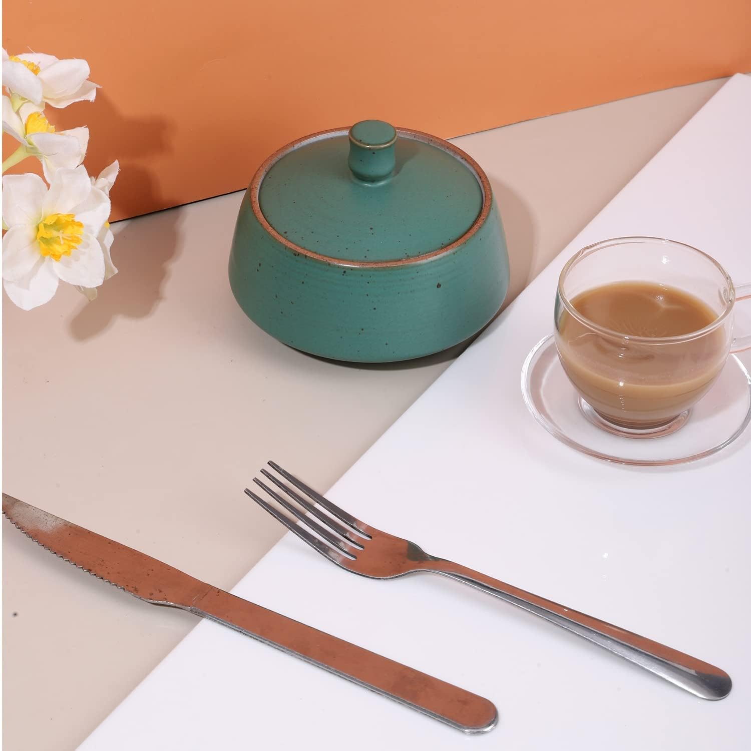 Retro Kitchen Ceramic Canister, 13.53 FL OZ (400 ML) Vintage Food Storage Jar for Tea, Coffee Beans, Herb, Candy, Spices, Nuts (Ancient Green)