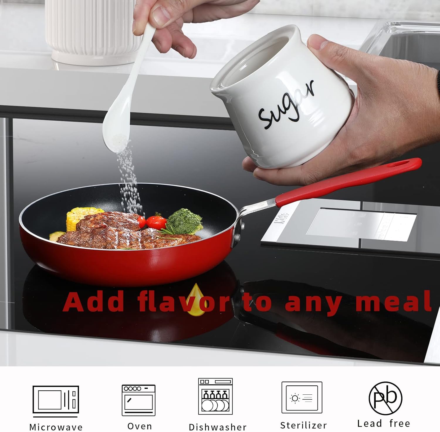 ONTUBE Ceramic Sugar Bowl with Lid and Spoon 12oz (White)
