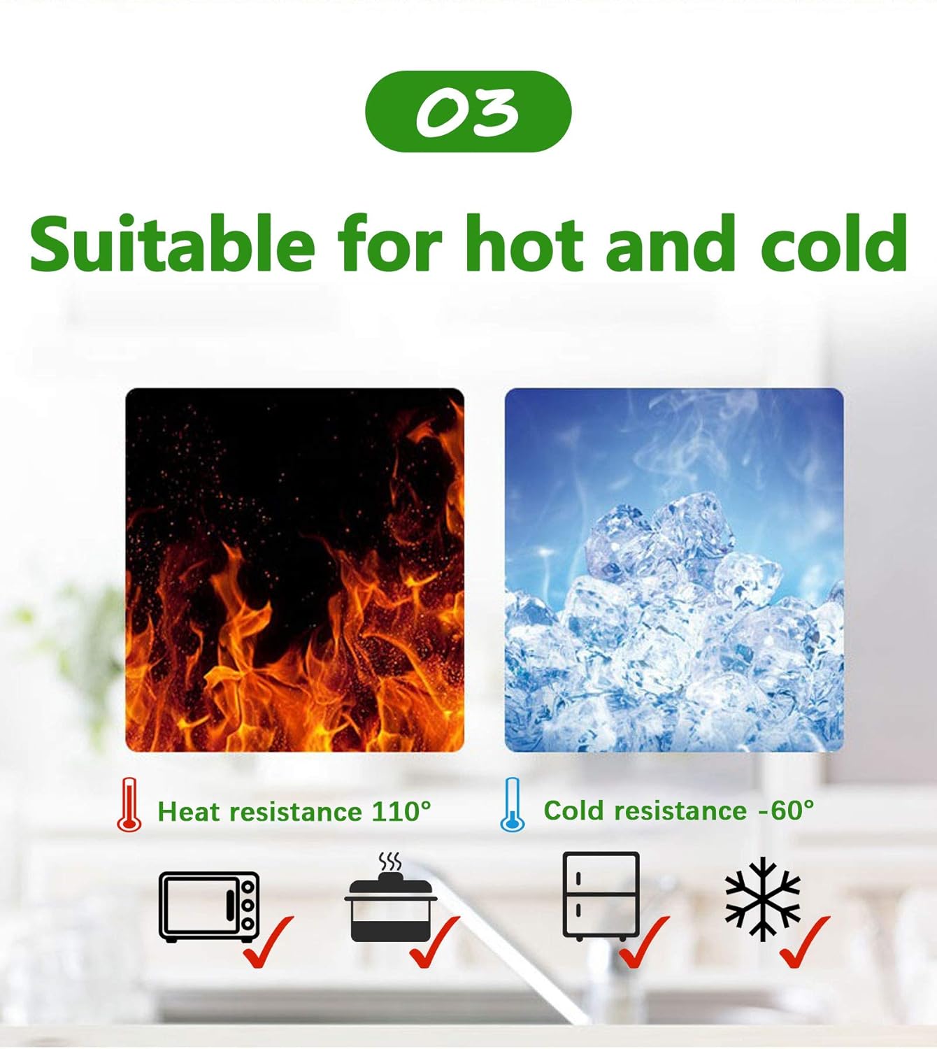 - 【Easy To Use】It’s very easy to operate. Choose a clean and dry surface first. You can create a sealed space by pressing your finger along the edge of the food to keep it fresh.