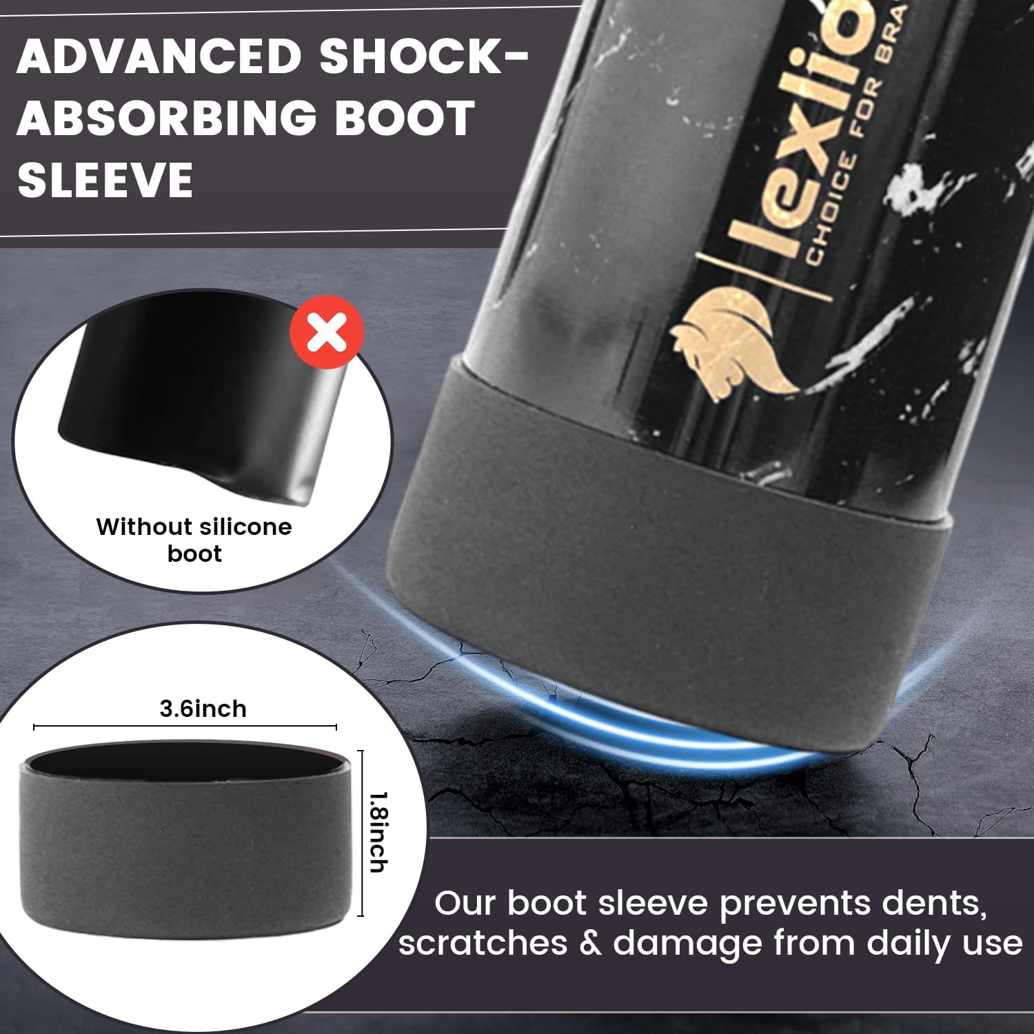 - ✅ SILICON BOOT/SLEEVE- Lexlion 32 oz stainless steel water bottle comes with an advanced shock-absorbing silicone material that helps to protect against dents, dings, scratches, and all the imperfections of your 32 oz insulated water bottle. You are protected against an inevitable drop in your water infuser bottle. This will extend the life of your flask. The infuser water bottle is BPA-free and made of soft and highest-quality material.