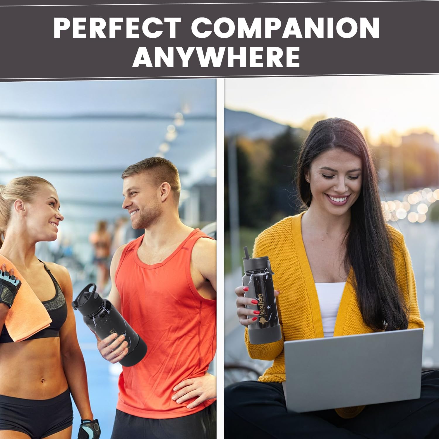 - ✅ LIDS & INFUSER/STRAINER- Lexlion water bottle 32 oz comes W/3 LIDS! a spout lid, a flip lid & and a third lid which is straw lid, 100% leak-proof & dishwasher safe. It includes a newly designed 2-piece strainer stainless steel, a very convenient filter to make loose tea leaves, cold coffee brews, herbs, or fruit-infused water. Add them to the filter basket, close it & clip in the tea water bottle infuser with water. If an infuser is not needed, just remove it.