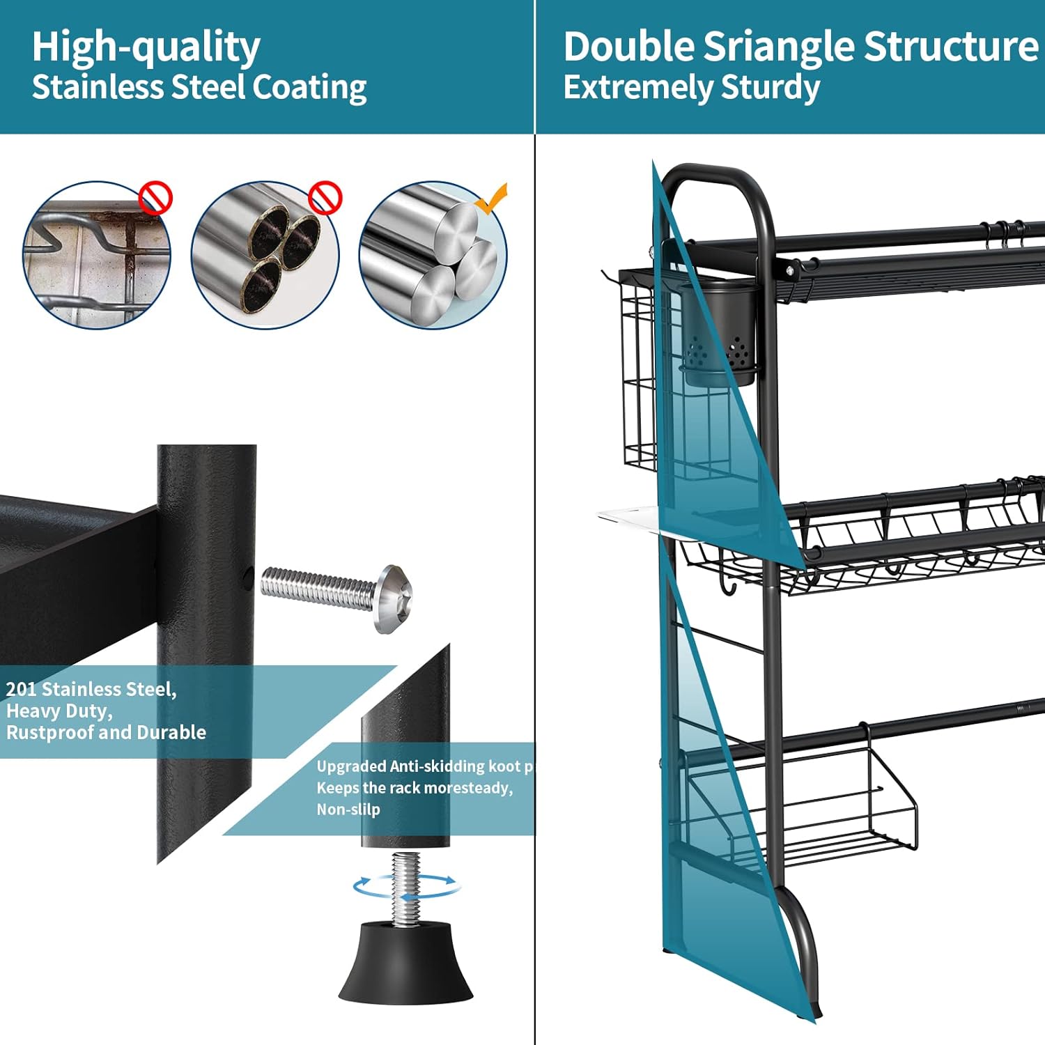 HOWDIA Over The Sink Dish Drying Rack, 3-Tier Stainless Steel Large Over The Sink Dish Rack with Utensil Holder Dish Drainers for Kitchen Counter