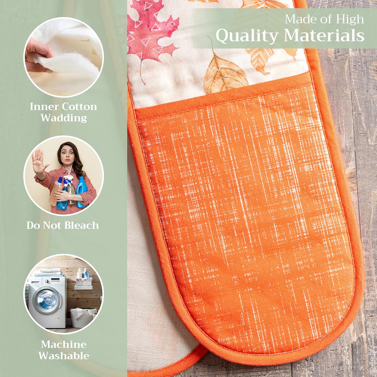 - 100% Quilted cotton: Crafted from premium quilted cotton for superior heat resistance and durability. This double oven mitt offers a soft, flexible grip and protects your hands during baking, roasting, or grilling