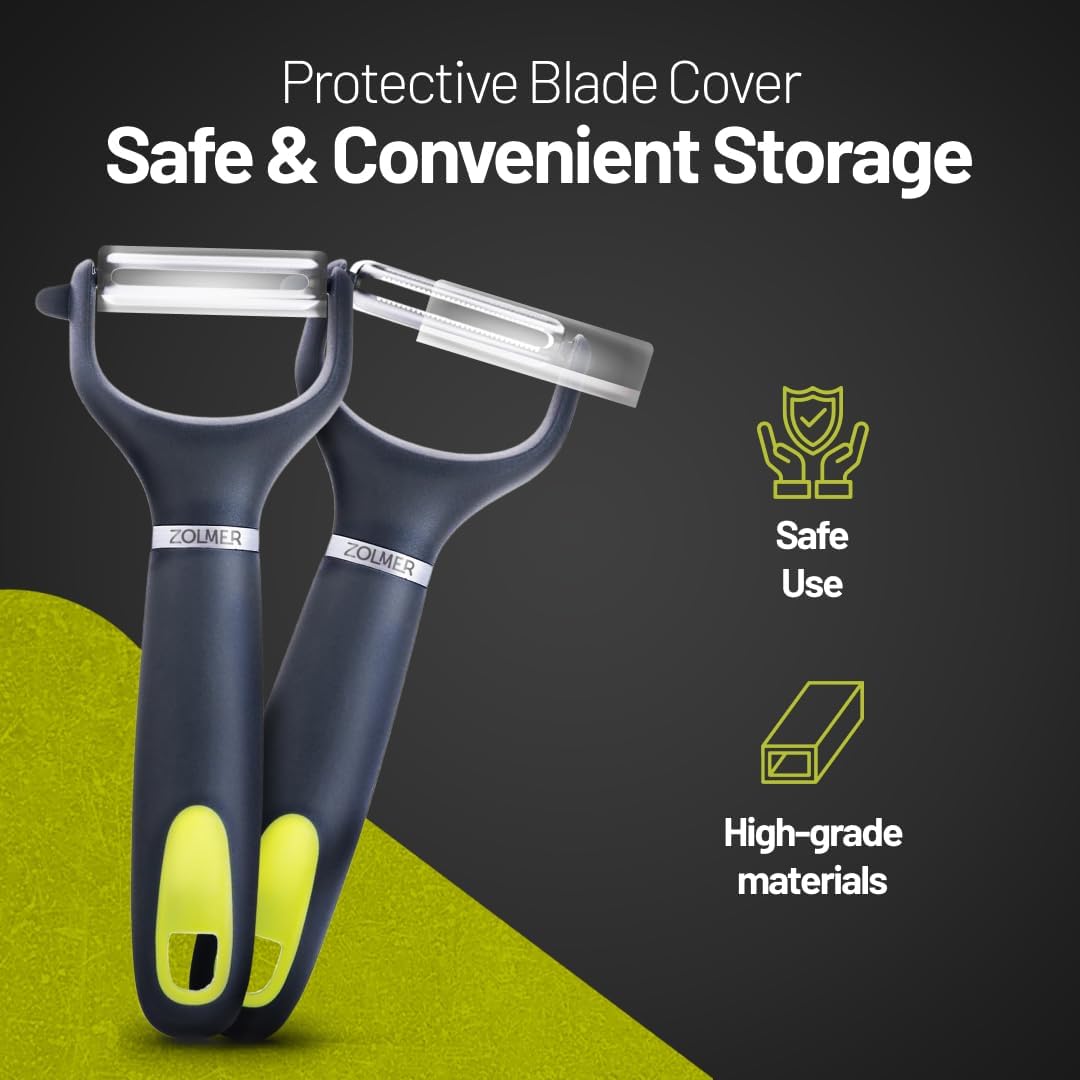 ZOLMER® Premium Y Peelers for kitchen with Smooth and Serrated Blades 2 Set - Extra Sharp Vegetable Peelers with Ergonomic Handle - Dishwasher Safe - Potato peelers, Fruit peeler and more