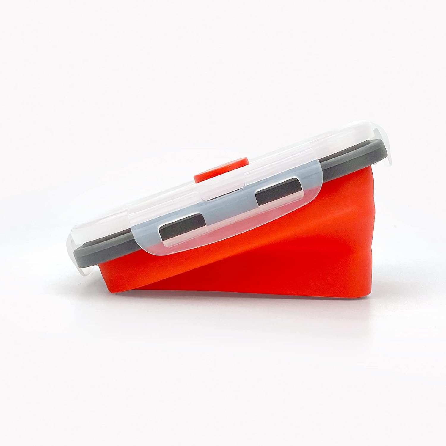 CCyanzi 3piece Collapsible Food Storage Containers with Lids, Silicone Lunch Container, Microwave & Freezer Safe, Space Saving for Kitchen Cabinet and Camping Backpack,(red gray)