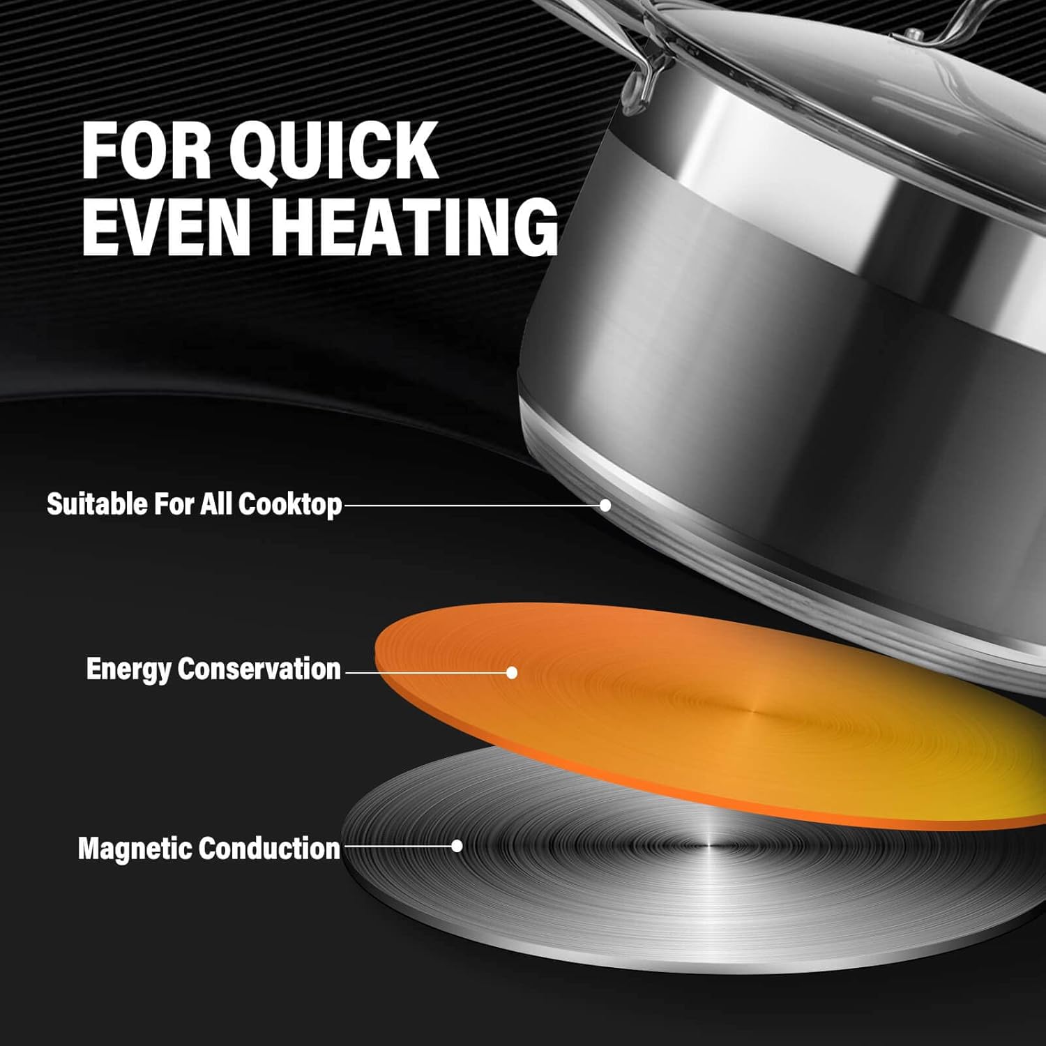 - ✅ 【Healthy Steel】No Non-Stick Coating,General non-stick coating cookware releases toxic fumes when cooking; As it becomes worn, the risk of ingesting Teflon increases drastically. Our stainless steel cookware does not apply any coating, and is free of health hazard.