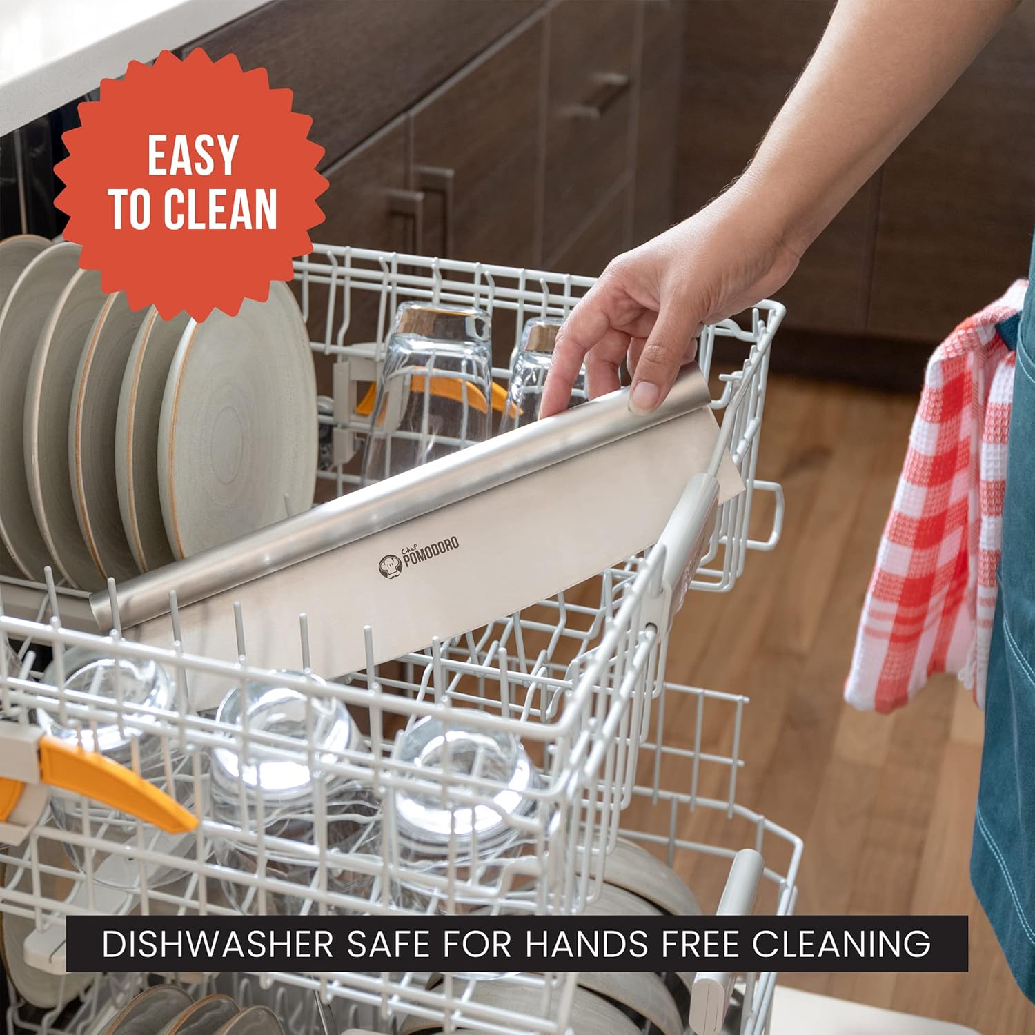 - DISHWASHER SAFE: Our pizza knife rocker is easy to clean. Made to withstand high temperatures and strong chemicals, you can easily load it into your dishwasher once you're done using it for the day.