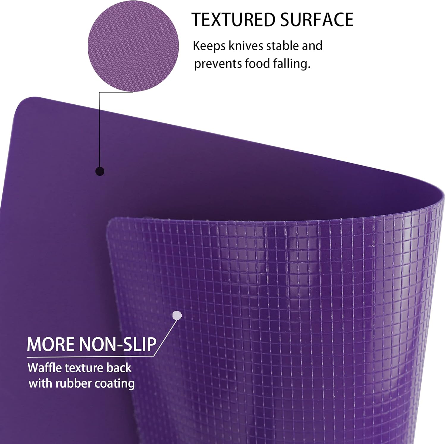 ZVP Flexible Plastic Cutting Boards for Kitchen Set of 3, Chopping Boards with Food Icon, Non-Slip Cutting Mats for Meat, BPA Free, Dishwasher Safe Rainbow