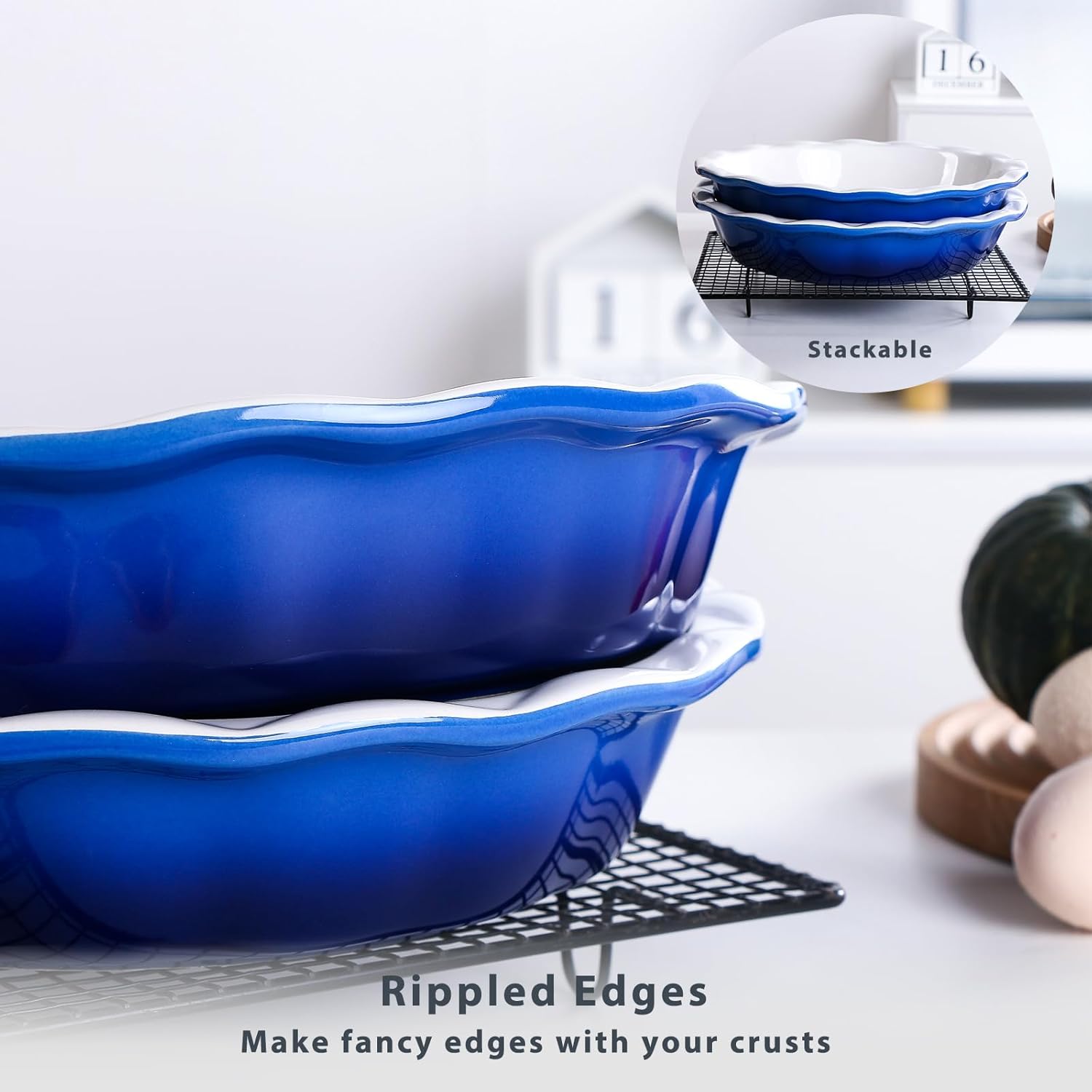 Lareina Ceramic 9 Inch Deep Dish Pie Pans, Set of 2, Blue, Non-Stick, Oven & Dishwasher Safe, Ideal for Baking Pies, Quiches, Cakes
