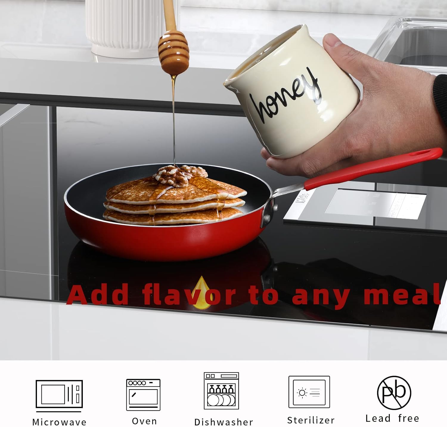 - CERAMIC MATERIAL: This honey jar is made of ceramic.The surface is smooth and translucent , which is easy to clean.It can be washed in the dishwasher
