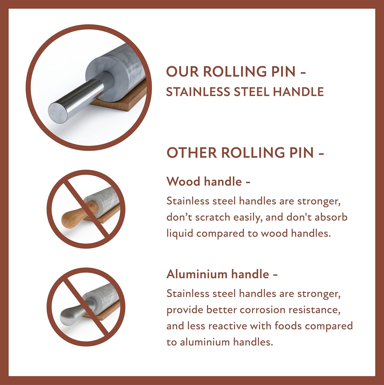 - ✔️ EASY TO CLEAN: The material of the Marble Roller Pin for baking isn't absorbent which makes it easy to clean and maintain.