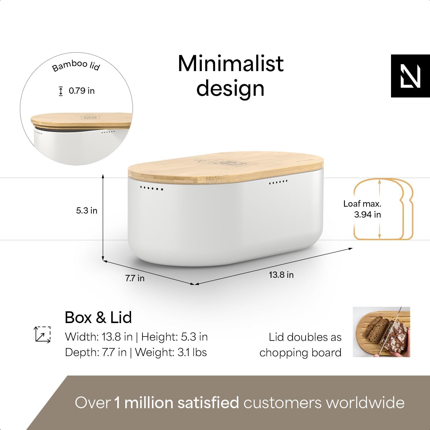 - MULTI-TALENT WITH CUTTING BOARD: The extra sturdy bamboo lid provides optimal storage conditions and is also suitable as a high-quality bread cutting board. The storage box offers enough space for several breads and pastries.