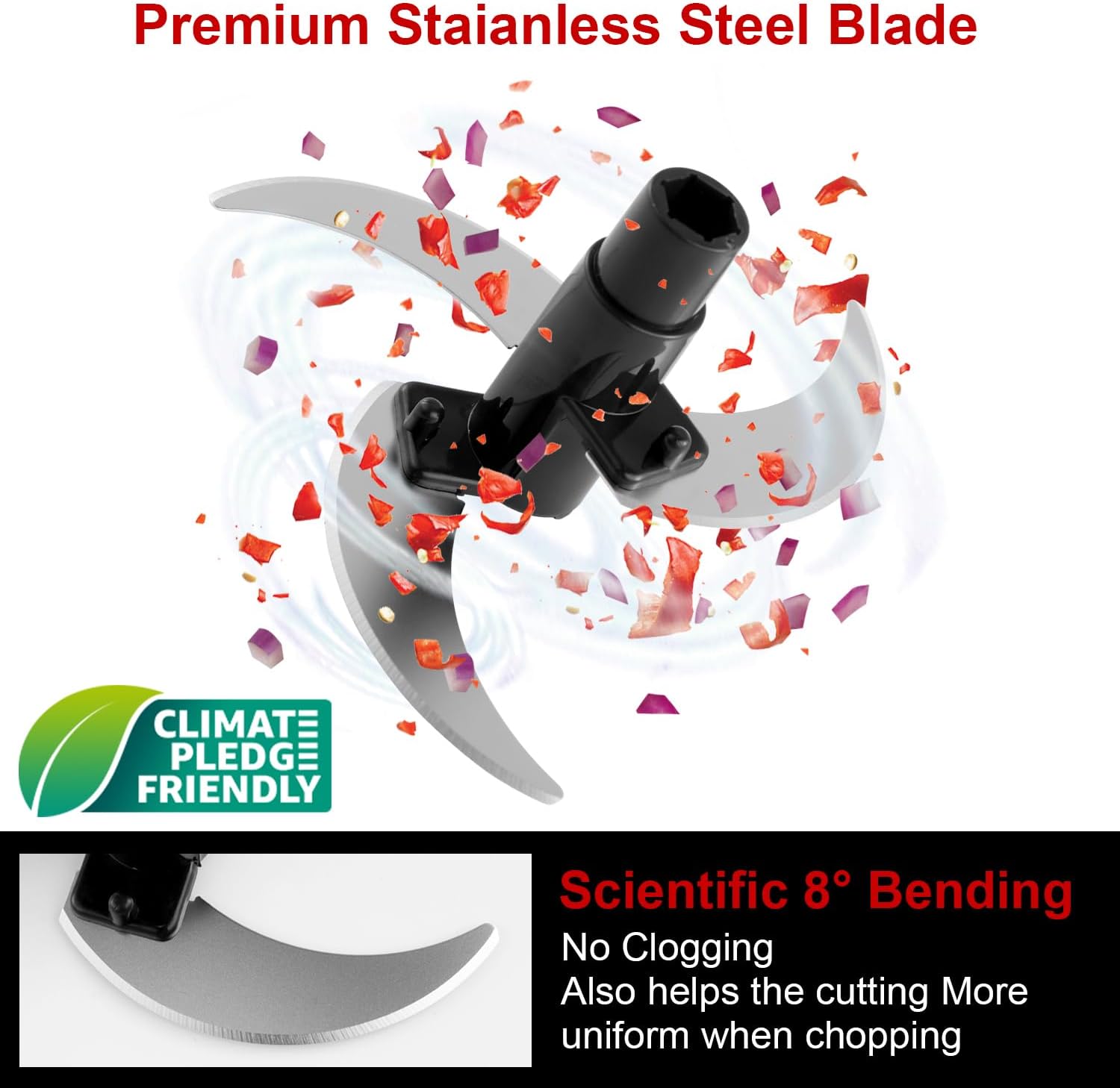- Makes Everything Faster : The food chopper is equipped with 420 surgical stainless steel blades, which helps easier chop with less effort. Just rotate the handle then everything will be done in seconds
