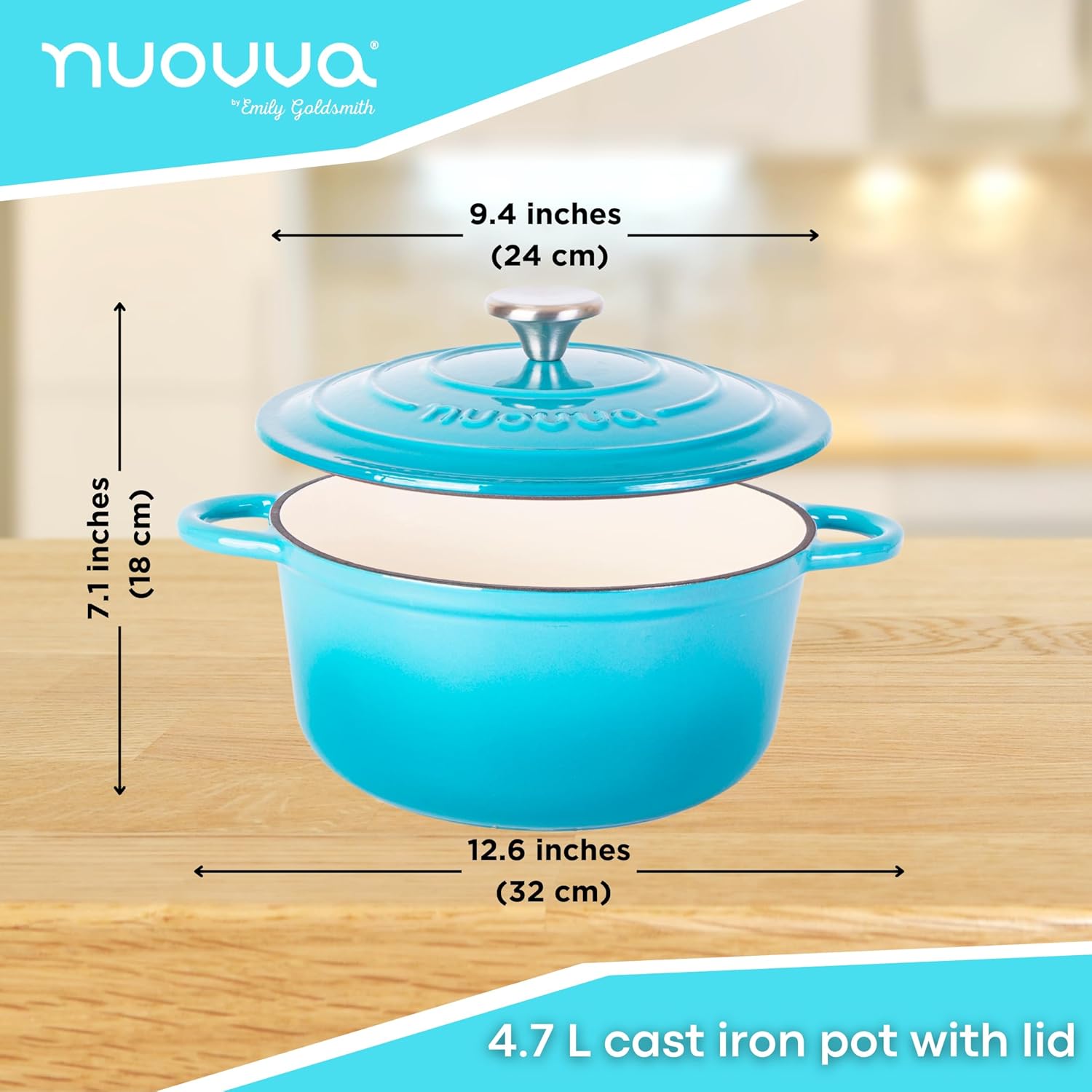 Cast Iron Pot with Lid – Non-Stick Ovenproof Enamelled Casserole Pot, Oven Safe up to 500° F – Sturdy Dutch Oven Cookware – Blue, 5-Quart, 24cm – by Nuovva