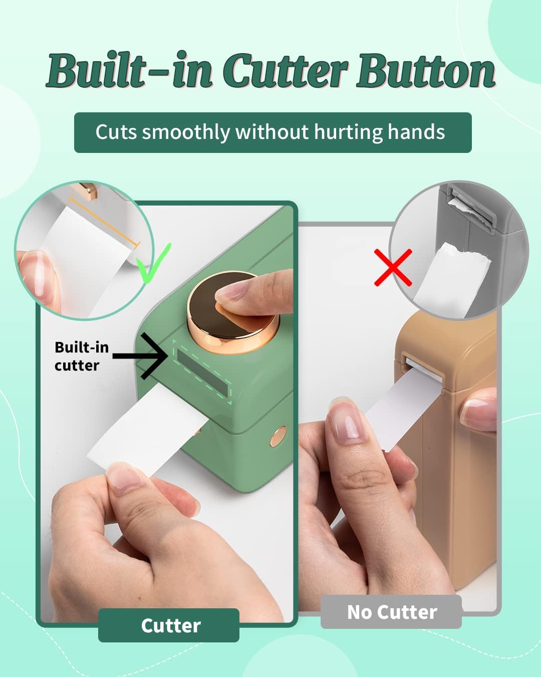 - Innovative Label Maker - 2023 New Design Phomemo D50 handheld label printer with a cutter button, builed-in blade design would not hurt your hand, D50 label machine can identify label sizes and pattern automatically, print more easily and fast