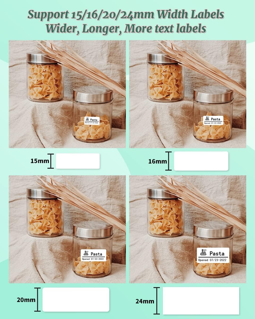 - Print Wider Label Width - Phomemo D50 label maker can print 16/20/24mm width label, compatible with die-cut/transparent/continuous paper label style, more than 20+ types label you can freely choose. Labels are larger, clearer, and more widely used