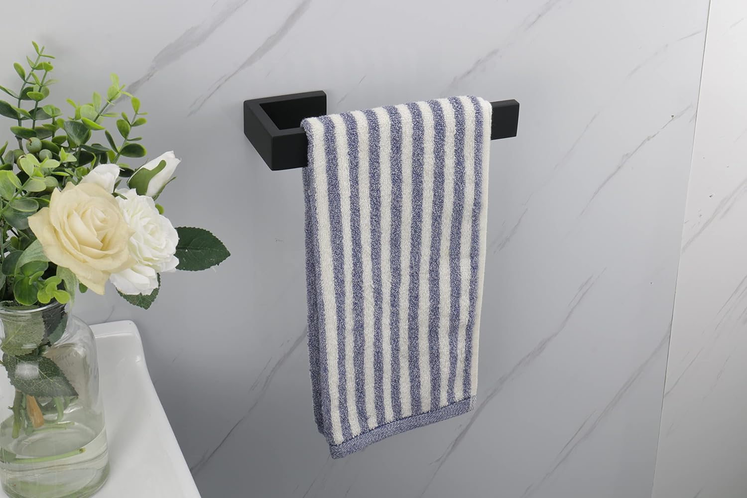 TocTen Hand Towel Holder/Towel Ring - Thicken SUS304 Stainless Steel Bathroom Hand Towel Hanger, 9 Inch Heavy Duty Wall Mounted Towel Rack, Square Hand Towel Bar for Bathroom Hardware (Black, 9 in)