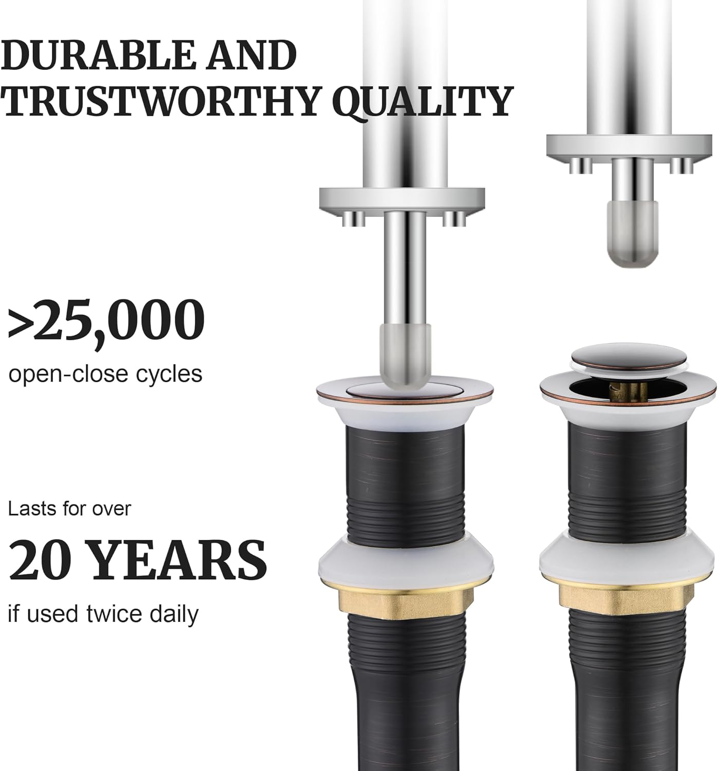 - HIGH QUALITY: Metal quality sink drain stopper for you, It is well made of high quality brass and stainless steel, all of the accessories are of the highest quality