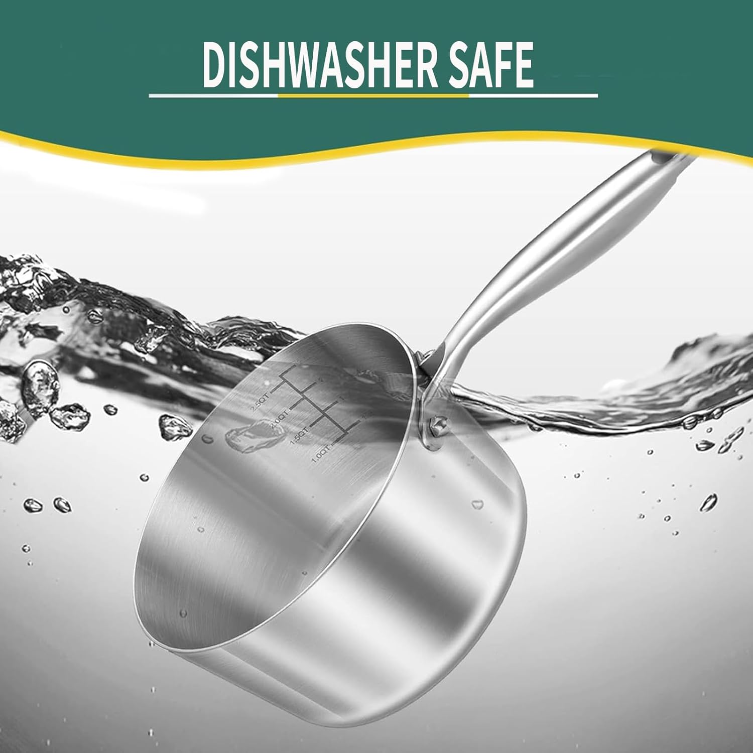 - 【DURABLE & EASY TO CLEAN】2.0MM-25% thicker stainless steel than other brands, more sturdy and durable. Dishwasher safe and the grease and residue left in the pan can be easily removed. The measuring line-markings bring great convenience for cooking baby food, perfect for your daily use