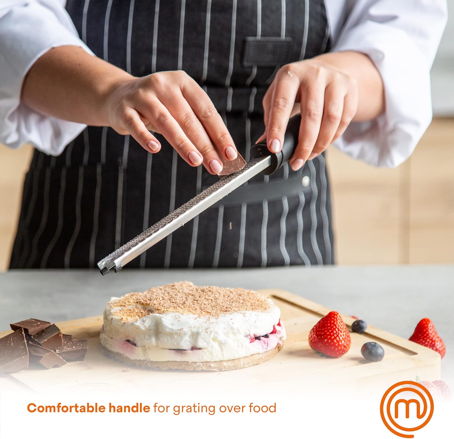 MasterChef Lemon Zester Grater with Handle, Kitchen Tool for Zesting Citrus Fruits & Finely Grating Parmesan Cheese, Garlic, Ginger, Coconut, Nutmeg, Wasabi, Chocolate etc, Stainless Steel, 12 inches