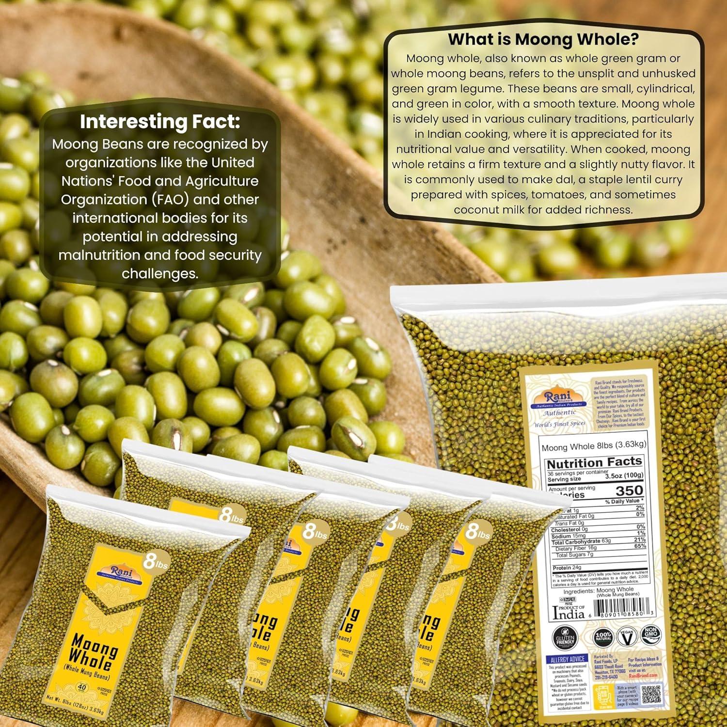 Rani Moong Whole (Ideal for Cooking & Sprouting, Whole Mung Beans w/Skin) Lentils Indian 128oz (8lbs) x Pack of 5 (Total 40lbs) Bulk ~ All Natural | Gluten Friendly | Non-GMO | Vegan | Indian Origin
