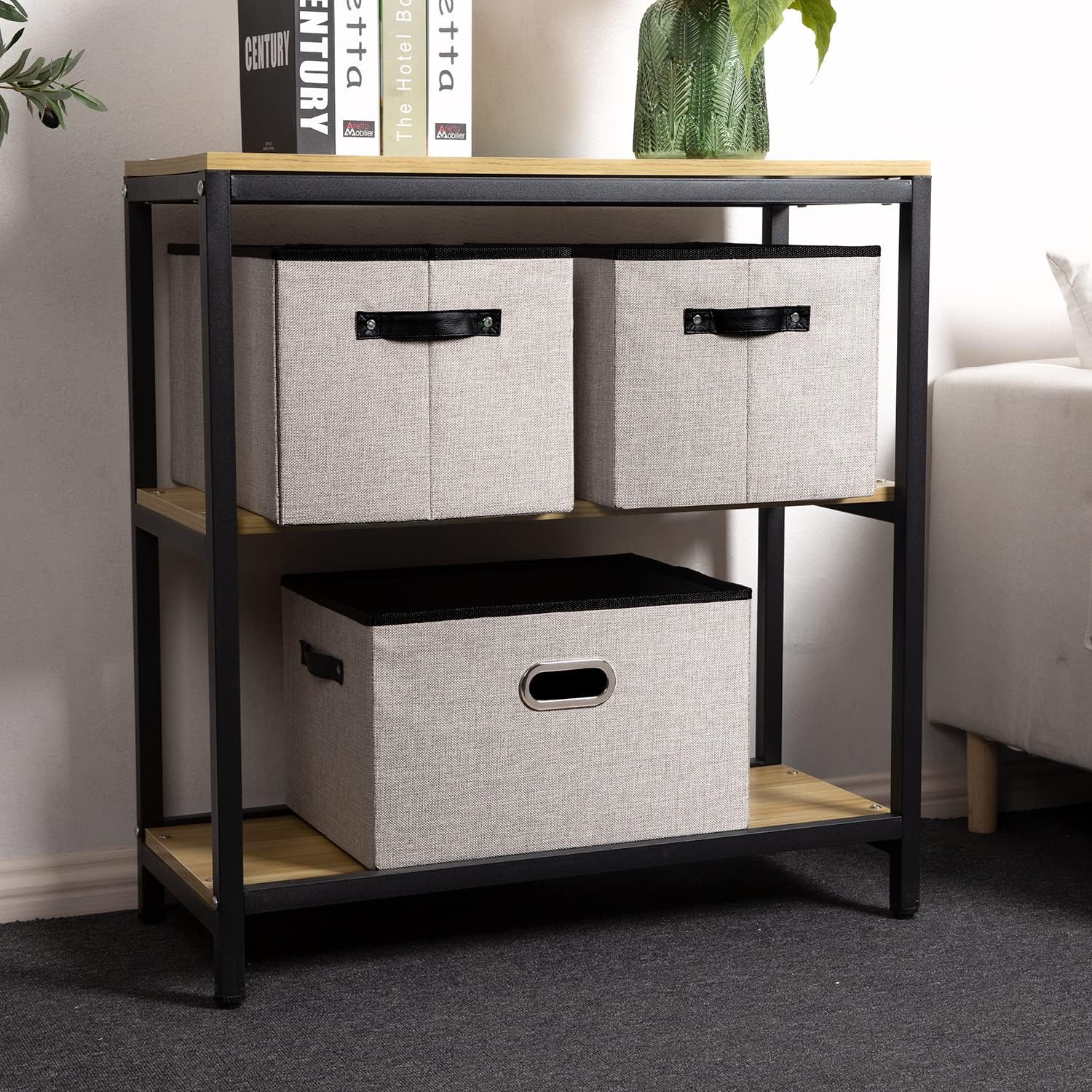 - 【Fashionable Bins】Designed to match interior decor and style in any room in the home or office. Enjoy the relaxing ambiance of the soft light grey and natural black neutral color scheme.