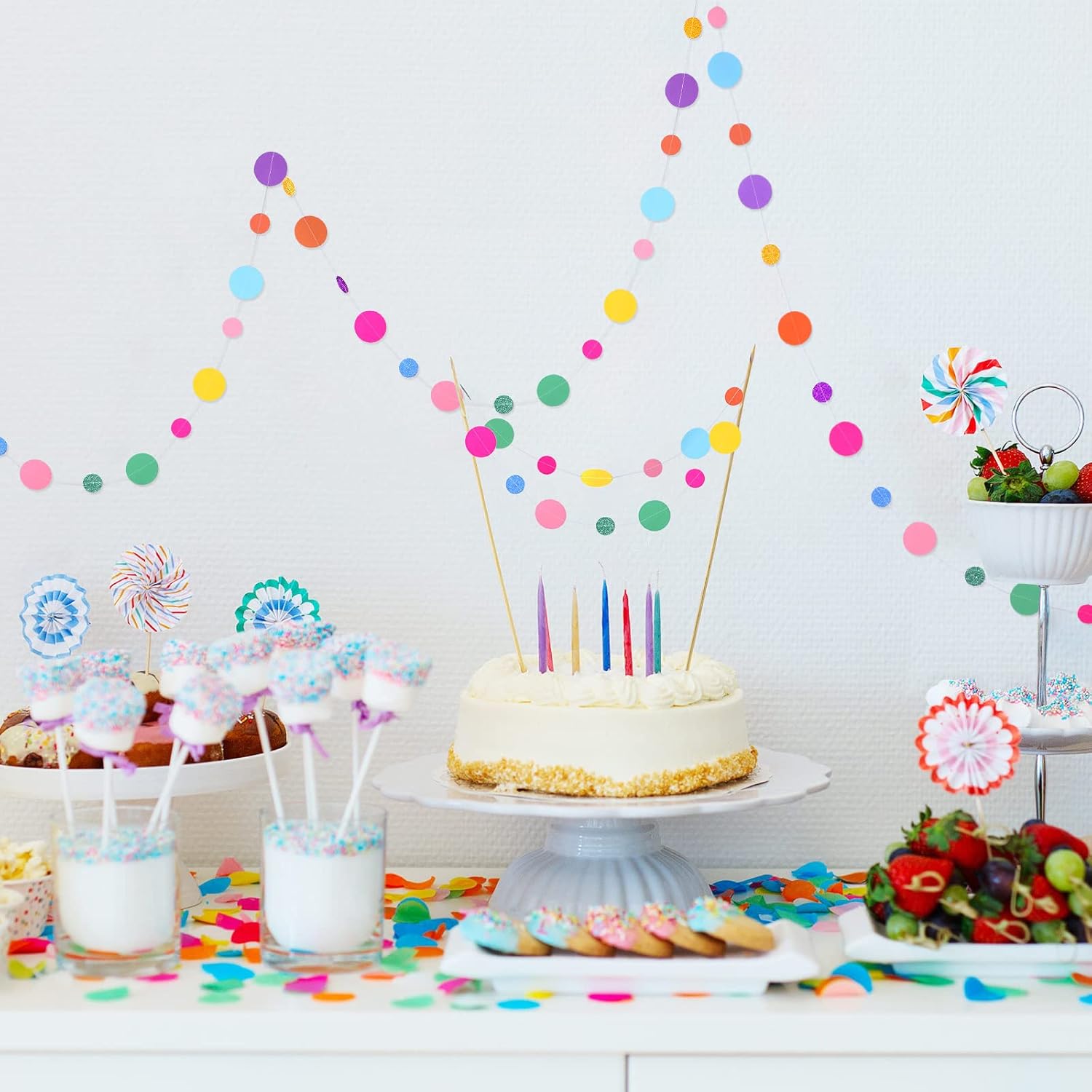 Outus 5 Pieces Colorful Dots Paper Garland Round Glitter Garland Hanging Confetti Streamers Backdrop Decoration for Birthday Classroom Candy Sprinkles Trunk or Treat Party (Rainbow)