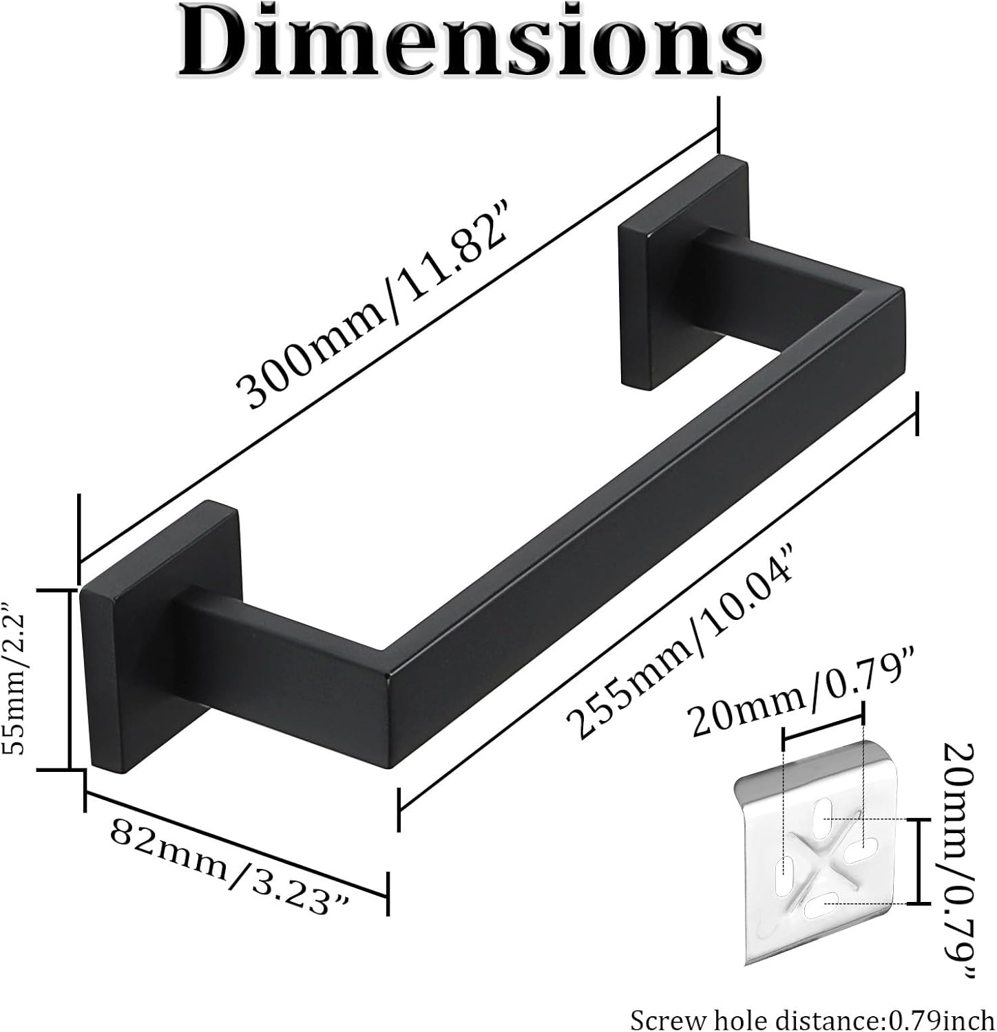 - 【Measure Before Buying】Dimensions 11.82''Lx2.2''Wx3.23''H, Useable Length 10.04 Inch towel hanger. 2.8 Inch Separation Distance from Wall - Enough space for quick drying, hanging towel quickly.No need to fold your towel any more.If you have any questions about the black towel bar, please feel free to contact me at any time