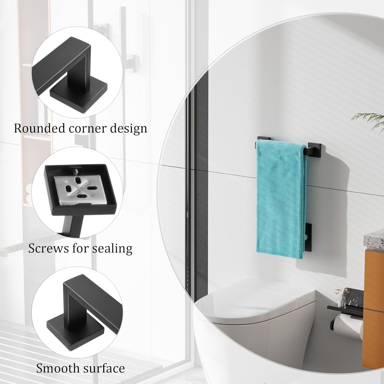 Alise Black Towel Bars,11.82 Inch Towel Holder Towel Racks for Bathroom and Lavatory,SUS304 Stainless Steel Hand Towel Hanger Rail Wall Mount,Useable Length 10.04 Inch Towel Bar, GYT030-B