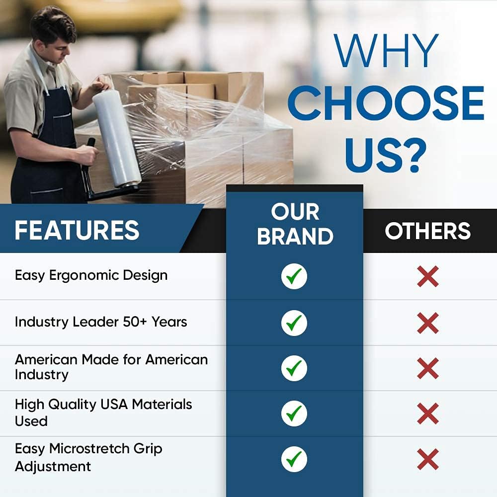 - ✅ INDUSTRIAL STRENGTH DURABILITY: Engineered for industrial use, this stretch film dispenser is built with robust materials to withstand the demands of packing wrap applications on furniture, boxes, and pallets. Experience unparalleled durability for all your packaging needs.