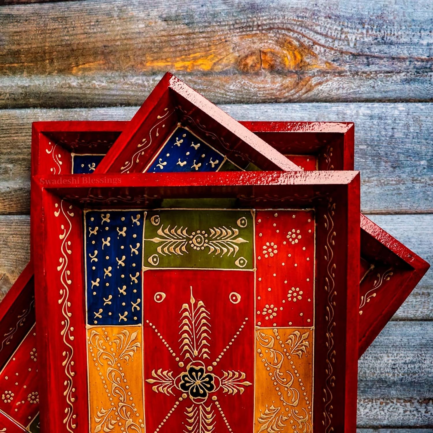 - Exquisite Indian Traditional Wooden Tray Set that will surely help you create a ‘WOW’ factor experience in front of your guests.