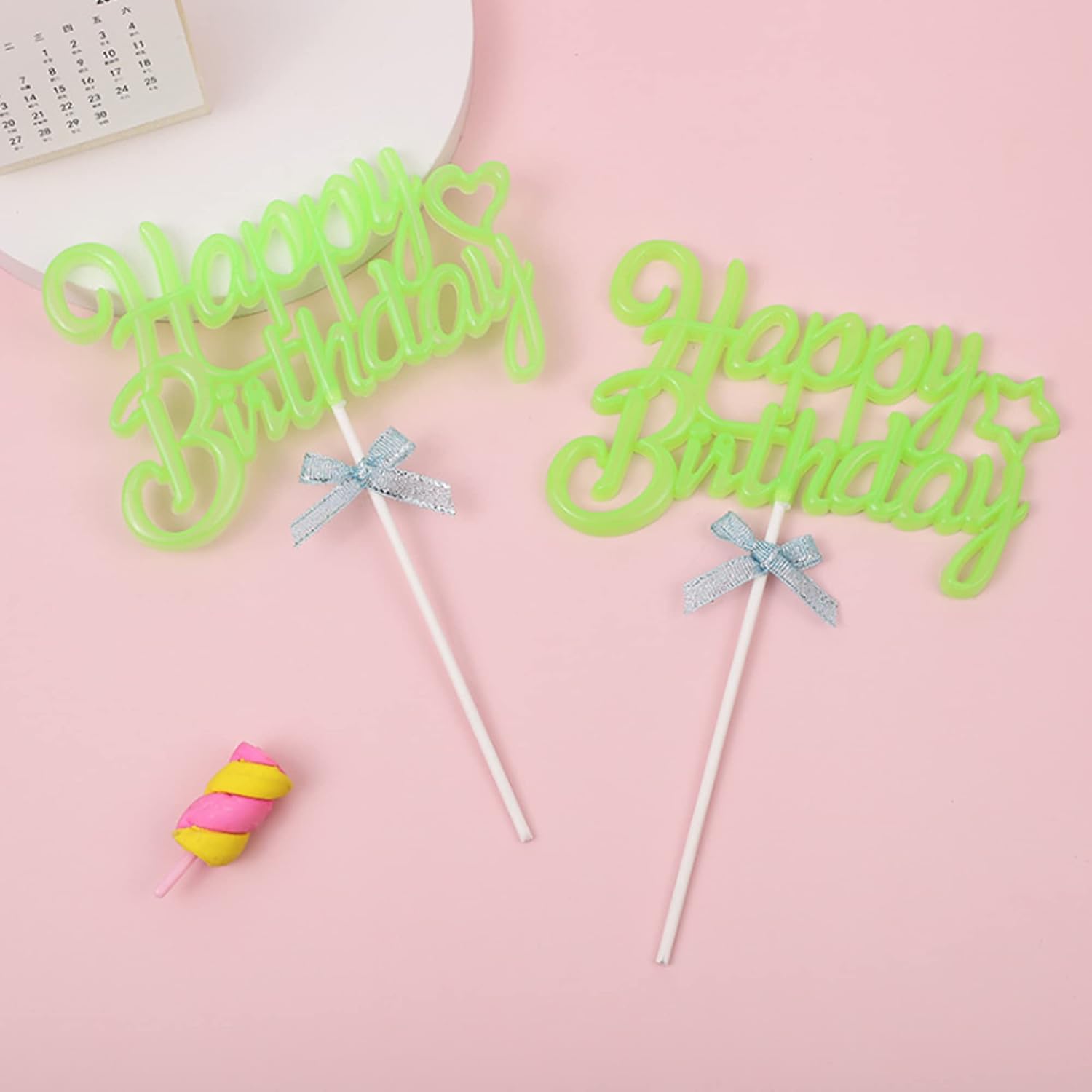 Glow Party Neon Birthday Cake Toppers Happy Birthday Cake Topper 3D Green Cake Decorations