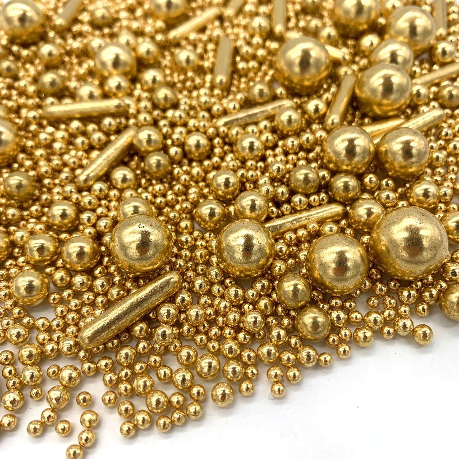 Sprinkles Gold Pearl Sugar Candy Mix Size, Nut Free, Baking Cake Decorations Cupcake Toppers Cookie Decorating Ice Cream Celebrations Shaker Jar Wedding Shower Party (120g/4.2oz)