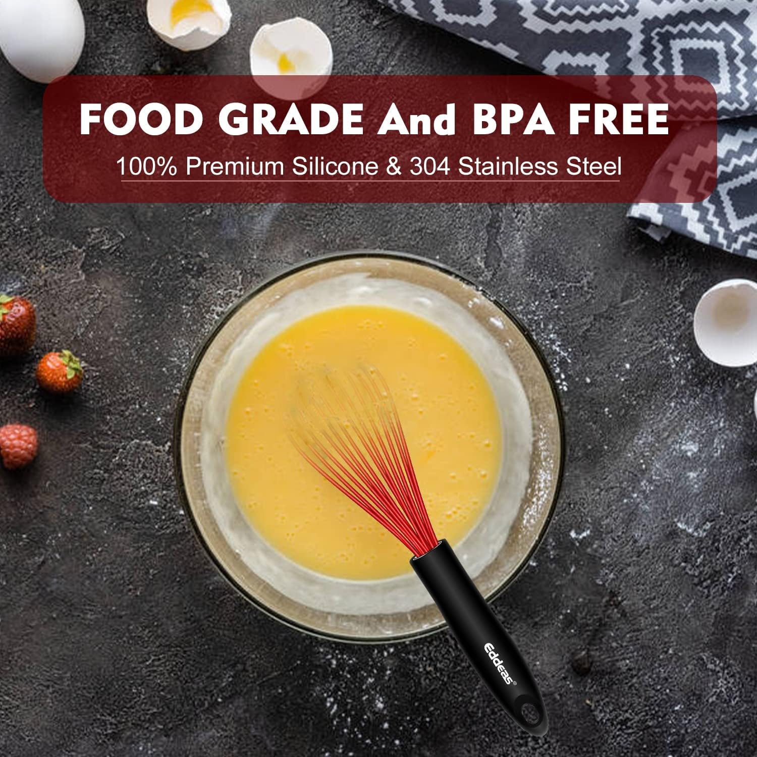 - ※STRONG AND SAFE - Non Scratch Coated Silicone whisk are made with food grade silicone wrapped with high quality steel wire, which solves the problem of friction between kitchenware and damage to the non-stick coating, silicone egg beater protects your non-stick cookware, plus the built-in The steel wire, which provides strong support when stirring, is the first choice in the kitchen.
